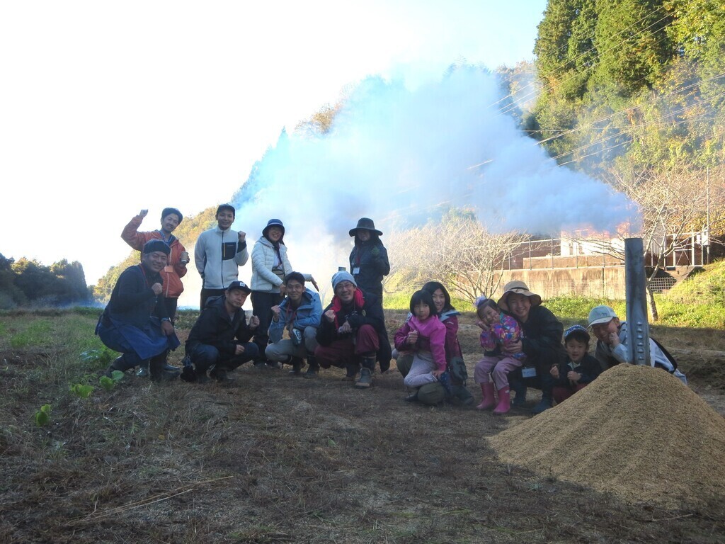 第1回は「まち側住民が主体となり耕作放棄地再生や農作業を通して、里山とまちを繋ぎ山間地域の活性化に挑戦する」有志団体Burupon(ブルポン)のみなさんによる『もみ殻くん炭づくり&収穫祭体験』です!